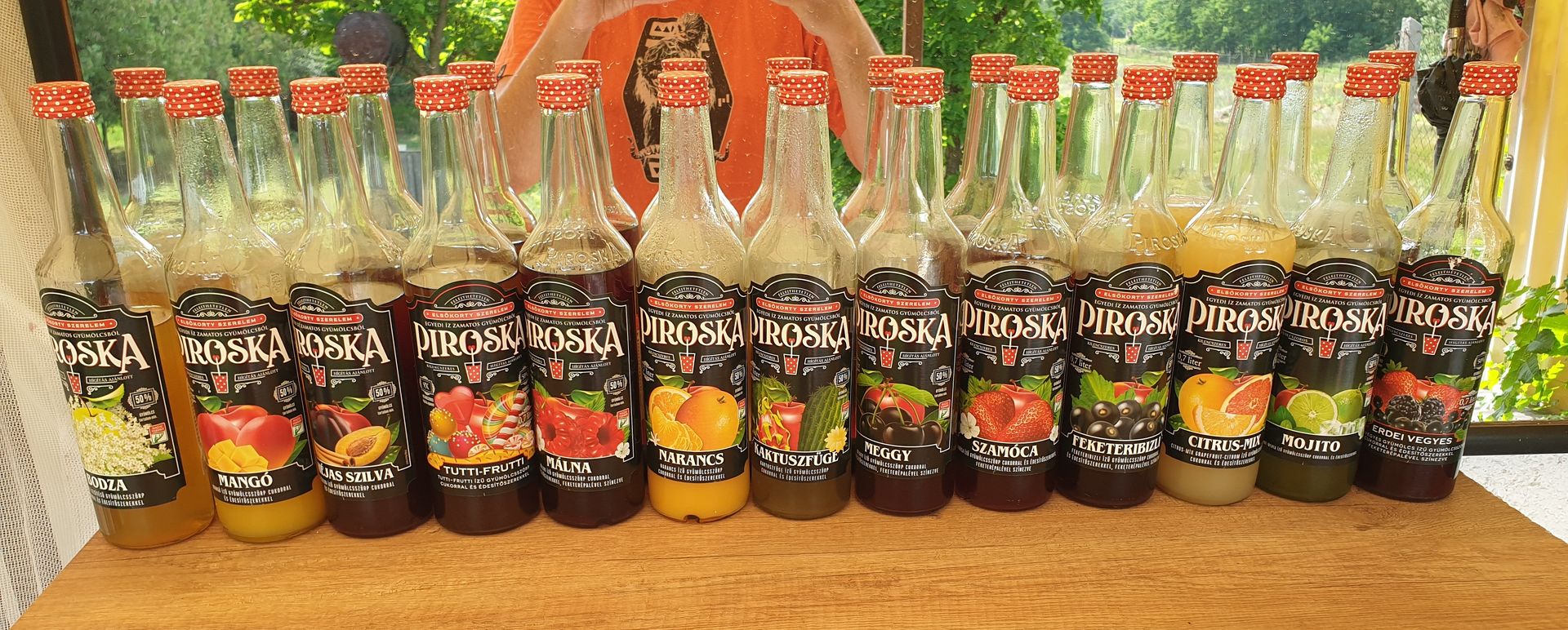 bodza, mangó, fahéjas szilva, tutti-frutti, málna, narancs, kaktuszfüge, meggy, szamóca, feketeribizli, citrus-mix, mojito, erdei vegyes